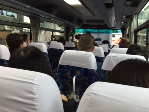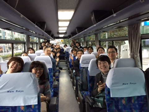 今日は、社長の誕生日を祝いにこれからみんなでバスに乗って出かけます。