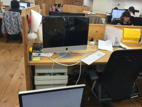 パソコン移行、難航? 今日も、芦沢さんの机のとこには、MacがEXILE状態です。 ということは あ、ひますぎて、大好物のリンゴをたべています。 新しくなったパソコンに古いパソコンからデータを送り込むのはなかなかの時間がかかりますよね。 「アイホンもアイパッドもあるけど、 ちゃんとしたメールは、 PCから書きたいのー。」 ということでした。 ちなみに、明日は弊社は、 「スマホ禁止デー」なので、この状況では、菅野さんが一発アウトです。 さて‥‥どうなることやら。 2015/11/11 11:40 |