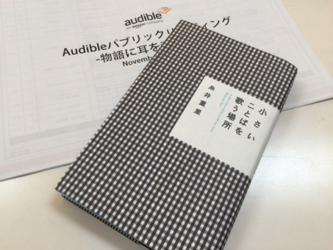 audibleに。 この場を借りて、お知らせです。 Amazonがスタートさせた 「audible」という、オーディオブックをアプリで聴くことができるサービスがあるんですが、その最初のライナップに『小さいことばを歌う場所』が入ってるんです。 つまり、『小さいことばを歌う場所』が音声でたのしめる、というわけ。 プロのナレーターの方と、糸井重里本人が朗読をしています。 今日は、そのプレス発表会。 糸井重里と、宮沢りえさんが、メインゲストとして呼ばれました。 けっこう、ちゃんとした場みたいですが、楽屋はいつもののんびりムードです。 「audible」をご利用の方は、『小さいことばを歌う場所』をどうぞよろしくお願いします。 そして、もうひとつ! 「audible」のラインナップには 吉本隆明さんの講演も加わる予定です。 2015/11/16 14:26 |