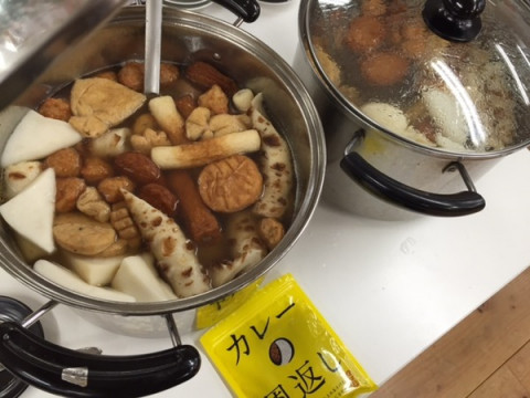 「カレーの恩返し」 「ほぼ日の水沢ダウン」の試着会に合わせて 先週TOBICHIで登場した 「カレーの恩返し」入りおでん。 記事を見ながら、ふっと 「ああ、おでん食べたいなあ‥‥」 とつぶやいたら、 「あ、おでん、 いまから出すよ!」 とのこと。 15分後に山もりのおでんがおやつテーブルに登場しました。 わーーーい。 なんてうれしいタイミング。 もちろん「カレーの恩返し」つき。 ふつうにおいしいだろうな、と思って食べたらふつう以上においしかったです。 ほんと、いい香り。 味が深く、濃くなります。 おでんに「恩返し」、めちゃくちゃいいですよー。 これからの季節、大おすすめです。 2015/11/16 18:55 |