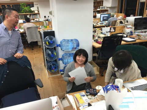 説教か? なぜか、目の前で正座をしている女性が。 すわ! 説教か? とおもいましたが、今後のTOBICHIでの展示について展示のときのたよれる姉さんの 相談がながくなった場合、通常はゴミ箱に座る乗組員が多いですが、ふじたの場合は、正座です。 ゴミ箱派は、弊社の定番ですが、正座は彼女だけだと思います。 せっかくなので、説教の図を撮影させてもらいました。 なにがせっかくなのか自分につっこみました。 そして目をはなしたスキに、 やめたほうがいいぞ。 足が冷えるし。 なんのTOBICHIかなーとおもったら、12月のはじめに開催の企画なんだそうですよ。 うっかりここに書いちゃうとチームのみなさまの計画を台無しにしますので、ここはひとつ、だんまりで行かせていただきます。 2015/11/17 18:29 |