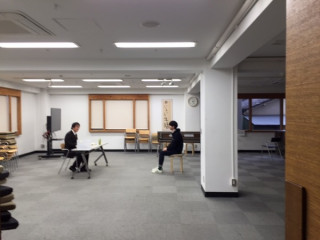 進路指導プレイ 「ちょっときて! きて!」 と呼ぶので大ホールに行ってみると、写真1枚目のような状態。 さきほど理科の先生みたいだと製作中されていた 「いや、こっちで作業したほうが テーブルが大きくてはかどるから。 それだけです。 タカヤくんはただ、 仕事をサボっているだけです」 「せんせぇー、 なに言ってるんですかぁ〜」 「ね、ほら、ふたり、 似合いすぎでしょ‥‥」 ??年前は高校生のクラモチとさわやなぎが入り口で大笑いをしていたのも、なんだか学校っぽくて、ちょっとおもしろかったです。 カワモト先生、仕事、ひきつづきがんばってくださいー。 2015/11/18 15:12 |