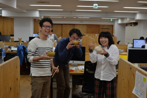 ラクサを想う シンガポールの旅から戻ってきて 「ラクサが食べたい」病になっておりますスガノです。 すると、斜め前の席の 「インスタントのラクサなら ありますよ。 おいしいかどうか わからないけど‥‥」 といって、分けてくれました。 ふうぁ、この香り‥‥。 たのしかった旅がよみがえります。 そういえば、旅の終わりに 伊藤まさこ顧問からこんなメッセージをいただいていたのでした。 「はしゃぎ過ぎよくぞもったな4日間!」 うう‥‥顧問、ありがとうございます。 4日間の長丁場の中継なので 「体力がもつかどうか心配だ」と顧問はおっしゃっていたのでした。 だから、はしゃぐなよと‥‥。 田中からもらったラクサはその場にいた ちょっと変わり種のカロリーメイツになっちゃった。 2015/11/24 13:41 |