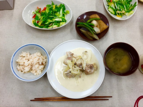 本日は給食です 今日の「ほぼ日」は給食の日でした。 あれ? 木曜なのになんでだろう(いつもは火曜)。 あとで総務チーム 今日のメニューは#red(鶏のレモンクリーム煮ガリのサラダさつま揚げとうずらの煮物トマトごはんお味噌汁) でした。 トマトごはん‥‥しらすが入ってて味がいいぐあいにしみてて、おいしかった。 サラダにガリ(生姜の酢漬け)が入っててさわやかでした。 みんなでそろっておいしくいただきましたが、集合のタイミングを逃した (星飛雄馬のクリスマスについて ご存じない方は検索してみてください) 2015/11/26 15:17 |