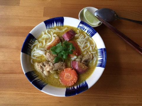 ベトナムカレーめん 京都に来ています。 訪れた理由は紅葉‥‥ではなく、 「カレーの恩返し」を使ったベトナムカレーの作り方を教えてもらうため。 先生はベトナム料理家の高谷亜由さん。 「ベトナムだとカレーは ごはんと食べるものではなく、 米のめん(ブン)や、 フランスパンと食べるんです」 とのことでした。へえええーー。 そして、完成したカレーはたしかにめんやフランスパンとの相性がばつぐん。 サラサラした、甘いカレーでした。 ああ、おいしかったです。 そのほか「カレーの恩返し」で作るエスニックな塩豚やエキゾチックな味わいのドレッシングなども教わってきましたので、また「カレーの恩返し」のページでご紹介させていただきますね。 どうぞ、おたのしみに〜。 2015/11/26 15:27 |