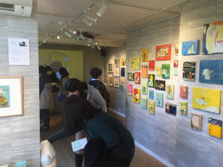 すでに数点の原画が買い求められ、福田ショップも大きな賑わいです。
