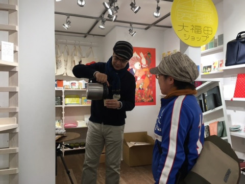グッズコーナーでは、ただいま山下がアンカーコーヒーの試飲をお配りしています。