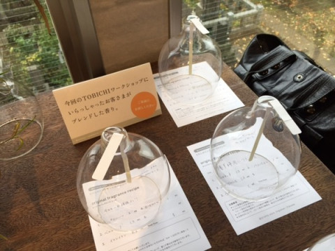 大盛況 今日も大盛況です。 ゆず胡椒の「青」がのこりわずかになりました。 (12月中旬以降に、Facebookページで買えるようになる予定です) 海大臣も大好評で、のこすは 「北」と「南」のみ! ゆず胡椒をたくさん召し上がっていただいて口のなかがピリッとなったら、 にほん茶(ぽっかり あたり茶)もどうぞ。 香りがよくて美味しい〜と好評です。 2階で開催中の、香りのイベントでは壁に展示してある香りカードを自由にお持ち帰りいただけます。 さっそく手帳に挟んでくださっている方もいました。 どうもありがとうございます! ワークショップでみなさんが作った香りも展示しています。 ぜひぜひご覧くださいね。 2015/12/06 14:48 |