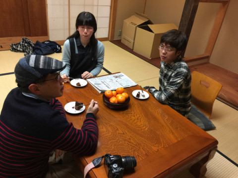 例の撮影。 それはきのうのことじゃった。 弊社和室にて、 「ザッハトルテ家族」の撮影が行われました。 これは、なにかというと、一部熱狂的なファンをもつ、 「ミーちゃんちのお隣のケーキ売ります」のオマケのコーナーのことです。 毎年お正月あけに販売する前橋の「シュヴェステルンハウス」のザッハトルテを販売しているのですが、ケーキが届いたときのワクワク感や、お届けする側のうれしさなど、この販売を通してうまれる 「きもち」の部分を不器用でもいいから、みなさんへお伝えするためにやっています。 つまり、来年2016年の1月にも 「ザッハトルテ」の販売が例年通りにございます。 この撮影がすむとぐっと師走感がでてくるのです。 2015/12/10 18:07 |