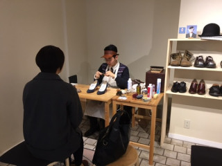 ふらっと 今回、等々靴磨店 TOBICHI2 出張営業は事前にウェブ予約していただく時間とふらっとお越しいただく時間をご用意いたしました。 当初予定していたよりも、ご予約のお客さまの靴磨きに時間がかからないことがわかりましたのでいまのところ、ふらっと来ていただいたお客さまの靴もすべて磨いております。 スエードのヒールやロングブーツなどもピカピカになってみなさんの元にかえっていってます。 わたくし、ただ見ているだけなのですが、とても気持ちがいいです。 2015/12/12 15:03 |