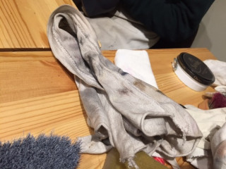 『佐世保のお店が西日がきつくて、夕方になると眩しくて色がわからなくなるので、裏地に黒の革をつけてみやすくした特注なんです。』