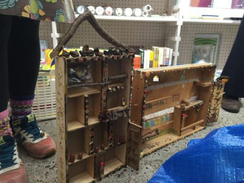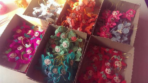 床屋かなぶん堂! 今週の金土日に催される 床屋かなぶん堂。 店主である床屋かなぶんさんが、商品や装飾品を一部、持ってきてくださいました。 うわ、大きいのも出てきた! 「『へめへめしこじ』だよ」 「だよ」って。 「へのへのもへじ」なら知ってるけど、 「へめへめしこじ」は知りません。 外にかけるのぼりみたいなものを確認したりもしました。 いつも使っているという什器も、すごいです。 そうめんの入っていた木箱を使って、すっごく細かい作業で、いろいろな装飾がされています。 す、すごい‥‥。 なんて言ったらいいんだろう。 とにかくすごいです。 ぜひ実物を見ていただきたいです。 一番下の写真のが「つなぐり」ですよ。 一個一個、手作業で、一点もの。 で、100円。どういうこっちゃ。 どんなお店になるんでしょうか。 たのしみです。 金土日、ぜひ来てくださいねー! 2015/12/16 20:13 |