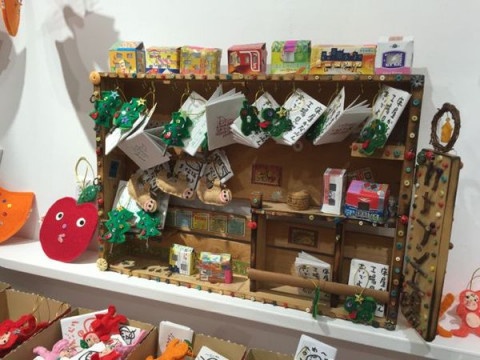 搬入完了ー! 明日から日曜までTOBICHIの奥のスペースで行われる 「床屋かなぶん堂」、搬入が終わりました。 もうね、すっごくいい空間ができました! 飾られたカッパのヘイちゃんも、へめへめしこじも、みんなひさしぶりの表舞台に、よろこんでいるそうです。 (いつもはしまってあるので) 搬入する前までここでお店を出していた、くまのパン屋の サブちゃんも、 「カッパはフランスにはいないです」 と言いながら、おもしろがってくれました。 もともと、 「キヨスクみたいにやりたい」 と思っていたかなぶんさん。 たのしい空間ができましたねー。 自立する来年の干支とか、クリスマスのものとか、いろいろなものがほぼすべて100円です。 かなぶんさん、本人はそのつもりはないかもしれないけど、ロックだなぁー。 先輩、かっこいいっす。 ビシビシ刺激を受けてます。 お店で売るものは、たくさん作ってくれていますし、開店中も、「かなぶん工場」を動かして作ってくれるようなので、ぜひぜひ、お立ち寄りくださいねー。 あぁ、たのしみだ! 2015/12/17 21:34 |