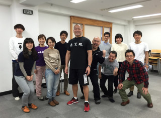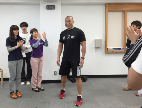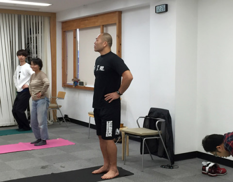 TK体操 2015 ファイナル! 毎週一回、TKさんこと、格闘家の高阪剛さんに体操を教えてもらっている、われら、ほぼ日乗組員。 初心者にもやさしく、肩甲骨や股関節などを中心に、体幹をきたえる、この「TK体操」は、一時間弱のあいだに、身体やコリがどんどんほぐれて、健康になっていくのが実感できて、毎回、人気のレクリエーションです。 そして、本日、2015年最後のTK体操をやったあと、今日の参加者全員でTKさんと一緒に記念写真を撮りました! 思えば、来週は事務所の引越しなので、このビルの大ホールでする体操もこれが最後。 次の事務所のスケジュールが決まるまで、しばしお別れです。 そんな年の瀬感いっぱいですが、TKさんは、感傷に浸る間は、ありません! なぜなら、年末の、29日に行われる、 『格闘技世界一決定戦!RIZIN FIGHTING WORLD GRAND-PRIX2015』という試合に出ることが決まっているからです。 久しぶりに格闘技のリングに戻るTKさん。 ほぼ日一同も、テレビの前で応援してます! フレーフレーTK! 無理のないように、、、っていうのは無理か。 2015/12/18 19:46 |