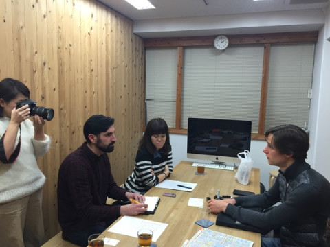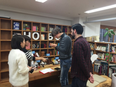 ハンコ大好きロマくん。 日本のハンコへの興味がきっかけで来日し、最近はモデルやタレントとして 活躍し始めているロマくんが、ほぼ日に遊びにきてくれました。 勉強して間もない日本語より、母国語であるフランス語のほうが取材に答えやすいということでTOBICHIより ふたりが語り合う様子はひとこともわからずとも楽しさが伝わってきます。 ハンコへの愛を語ってもらったおかえしにロマくんのために準備したほぼ日文具コーナーで日本の文具やほぼ日手帳のことをお伝えしたところ、ロマくんも大喜びでした! (うれしい表情が 伝わってきました) この様子は1月に ほぼ日手帳のページでレポートをさせていただきますね。 たくさんハンコを押してくれるかな。 2015/12/21 16:18 |
