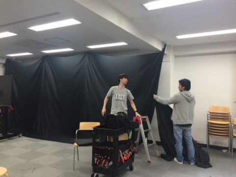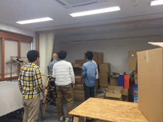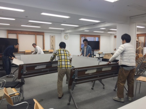 会場セッティングをすべく社内に声をかけると力自慢たちが集い、ささっといろいろ片付けてくれました。