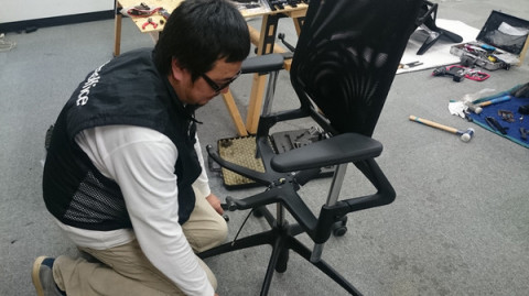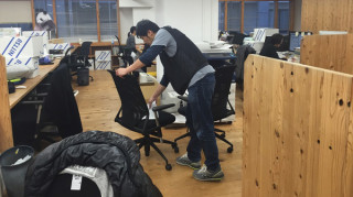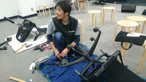 椅子の修理中! お引越しのための片付けと準備が進むなか、 「椅子のクリーニングと修理」も行われています。 数日前に椅子の点検がありその時に選ばれた修理やメンテナンスの必要な椅子が大ホールに運ばれます。 修理をしてくれるのは、インターオフィスさん。 手早く、一脚を15分から、30分で終わらせてくれます。 見ていても、早い早い。 またこの前の日曜には、全部の椅子のクリーニングもありました。 はずかしながら、わたくし、食べこぼしらしきシミが座面にあったのが、きれいになっていました〜。 恐縮です。 こちらも取り仕切っているのは、今回の引っ越しの実務上のリーダー、 総務の先輩 とにかく引っ越しって大変ですからね〜。 しかも、うちの会社の人達は、なにかとフリースタイル。 机に私物の多い人は珍しくないし、思いついたことをすぐ言ったりなんでも気軽に質問したり。 それでも毎日、笑顔の 同僚ながら、リスペクト。 それにしても。 引っ越しはするし、椅子は座りやすくなるし‥‥。 来年が楽しみ! 2015/12/22 15:07 |