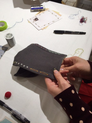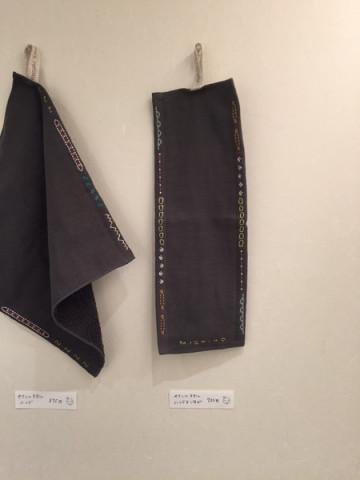 ワークショップではポストカードに刺繍できますが、TOBICHIでは、やさしいタオルも販売していますので、タオルをお買い求めいただくとタオルへの名入れワークショップもできますよー。