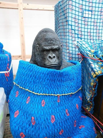 ゴリラのおひっこし 旧事務所の玄関で、いつもみんなをあたたかくお迎えしていたゴリラさんもおひっこしです。 毛布にくるまれて眠ってるみたい。 ほのぼのしちゃいました。 このまま年明けまであたたかく、おやすみね。 ひっこし先を、1度もみたことがない乗組員もいるので、なかの様子の写真は、まだちょっぴりにさせてください。 黄色の壁に、まあるい照明のたのしい内装です。 宇宙部の 足先まで伸びて、うつくしい。。 LANの線が、新体操の道具のようです。 いいオフィスになりそうです。 2015/12/26 20:38 |