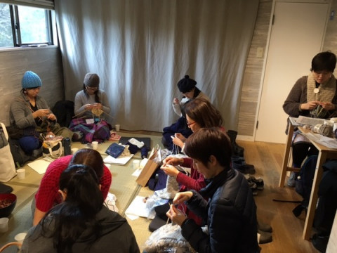 Miknitsの編みもの茶の間、2日め おはようございます! 「Miknitsの編みもの茶の間」 2日め、オープンしました。 昨日に引き続き、先生は編み図の校正をしている向井さんです! ほぼ日乗組員で、編みもの仲間の田中、山川も中先生として編みもの相談にのらせていただきます。 2階で編みものをする方にはお茶とお菓子もたのしんでいただいてますー。 (見学だけのかたには提供できないこと、あらかじめご了承ください) 編みもの茶の間はワイワイ! いや、ほんとうにたのしそう。 まざりたい…! 編みものはほぼやったことがありませんがこの場でならデビューできそうな気がする…! 2015/12/27 11:59 |
