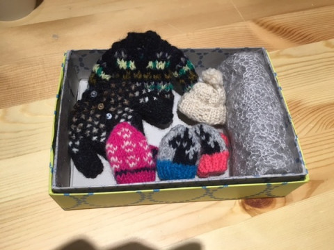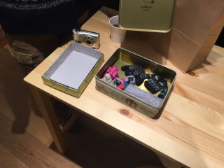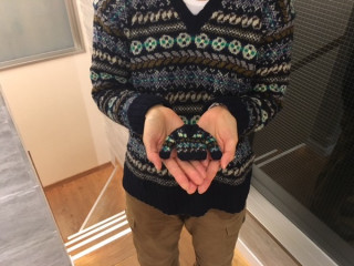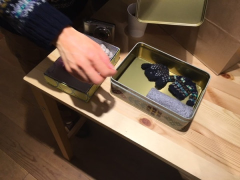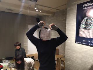 ミニチュアニット 三國さん 「みんなー、見て見て! すごいのー!」 「きゃぁーーー!」 「かわいいーーー!!」 茶の間に歓声があがりました。 畳の間の上のものに、みんな注目してます。 三國さんが手に持っているものは、さきほどいらしたSさんがつくったミニチュアのニットたち。 ニットを編んだあと、あまった毛糸でミニチュアを作っているそうです。 こ、こまかい…! ちいちゃい…! かわいい……!!! 写真枚目は、おめしのニットとそのミニチュア。 ふひゃぁー、ほんとすごい…! ミニチュアのニットを入れていた箱が手狭になってきたそうで、ショップでお買い求めいただいた 「Miknits 缶」に入れ替えてくださいました。 まだまだ入りそうですねー。 新作ができたら、ぜひ、また見せてください! 2015/12/27 19:21 |