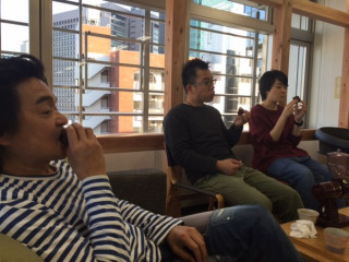 篠田さんがおやつを置いていってくれたのでさっそくコーヒーミルとコーヒーサーバーを探し出してくつろぎのスペースを確保し始めるわたくしたち。