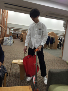 道具。 この青年は 数学を学ぶ大学生。 あれ、今年で卒業だっけ? 糸井事務所のバイトくんです。 きのう会議をしていたら、すいーっと登場しました。 あれは‥‥ほら、なんていったっけ? キックボード。 「会社、広くなったから、 とても重宝しています。」 へー、そうなんだー。 わたしも買おうかな、とおもって、いや、まてよ。 歩いたほうがカロリーの消費ができる、つまり、「やせるチャンス」、略して「やせチャン」ではないかと思い直しました。 ‥‥無駄な投稿をすみません。 2016/01/14 11:42 |