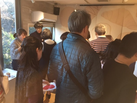 パン焼き会 バルミューダさんの夜のワークショップがはじまりました。 本日は予想をうわまわる大盛況でお並びいただいたり、受付を終了させていただいたりしてみなさまにたいへんご迷惑をおかけいたしました。 明日、最終日となります。 受付終了の予定を1時間早め、12時から17時とさせていただきます。 どうぞお早いお越しをお待ちしております。 TOBICHI2は、パンの焼きあがったおいしいにおいが充満しています。 みなさまのおいしい顔を見ているとパン、というものの魔法のような力を感じます。 ブレッド、じゃなくてパン、ってところがまた、おいしそうなんですよね。 2016/01/16 18:28 |