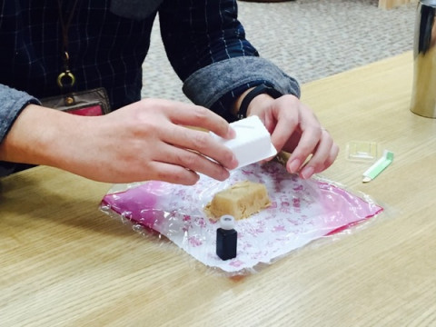信玄餅の食べかた講座 長野県の善光寺に行くことになり、行き先を「善光寺」にして路線検索し、その検索画面に従って電車に乗ったところ、2時間後、山梨県の「善光寺駅」という全然違う場所に降り立っていた‥‥という人がいます。 そんな間抜けな人がいるのかとお思いでしょうか。 はい、います。それは私です。 山梨にも善光寺があったのですね。 長野の善光寺は「長野駅」で検索しないといけなかったのですね。 というわけで長野にたどりつけず、呆然としながら山梨の銘菓・信玄餅を買って戻ってきた週末。 信玄餅といえば、以前、 「信玄餅には食べ方がいろいろあるんです」 と言っていたので、信玄餅を渡して、それを教えてもらうことにしました。 「4パターンくらいあるけど、どれにしますか」 というので、 「おすすめ」をお願いしました。 それは 1.包み紙である「ふろしき」の上に、 中身のお餅ときなこを全て出す。 2.そこに黒蜜をぜんぶ垂らす。 3.黒蜜がよく絡むように、 ふろしきの外側から揉む。 4.広げて、食べる。 というものでした。 みなさんご存知でした? 「ええ、も、揉むの?!」とびっくりしていますが、ちゃんと公式ホームページにも 「お召し上がり方 番外編」として掲載されている食べ方なんだそうです。 で、食べてみました。 むむ、これは‥‥黒蜜ときなこが餅にしっかりからんでふつうに食べるより、ずっと濃厚な味わいです。 おいしいです。 最後に、空になった容器をふろしきでふたたび包んで、片付けます。 他のパターンもあるそうなので、またいずれ信玄餅が手に入ったら紹介したいと思います。 2016/01/18 16:48 |