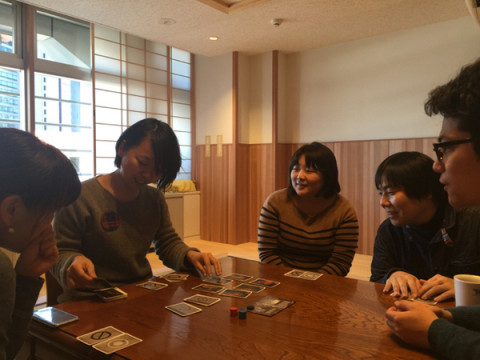 カードゲーム。 それはとある日のことじゃった。 「いま、時間ありますか。」 と、耳打ちをします。 こういう場合、弊社では乗ったほうがいいのです。 席が近い 「もちろん」とこたえて、和室に登ります。 高円寺にあるカードゲームのお店 「すごろくや」のまるたさんとお知り合いになってから、わたくしどもはカードゲームの大ファンになっています。 新しいゲームを仕入れては、 「いま、時間ありますか?」と同僚にきいてはゲーム時間をひねり出しています。 今回は、「レジスタンス」というゲーム。 圧政に抵抗する地下組織="レジスタンス"がミッションを成功させるべくプレイ。 なんだけど、中にスパイが紛れ込み、ミッションを妨害する、という筋書きで進行していくのです。 スパイはだれなのか? レジスタンスはだれなのか? をあぶり出していきます。 スパイをあぶり出す型のゲームはついつい熱くなるのです。 特に、トリックスター・ この弊社内のカードゲームブームはしばらく続きそうな気配です。 2016/01/20 19:58 |
