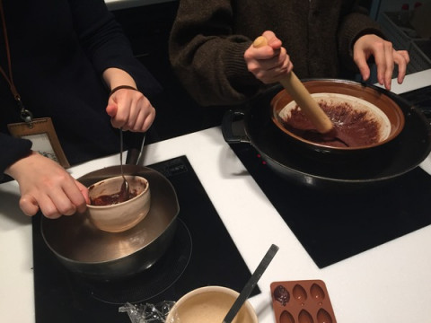 聞くところによれば、カカオ豆を焙煎するところからチョコレートをつくれるキットをもらって、3時間かけてチョコづくりをしているそうです。