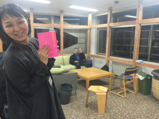 「ちょっと トークショーが 遅れるって連絡があって、 手持ち無沙汰になっちゃった。」