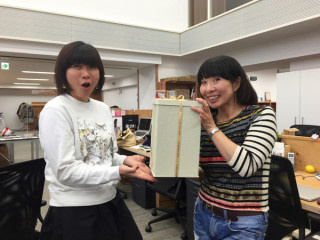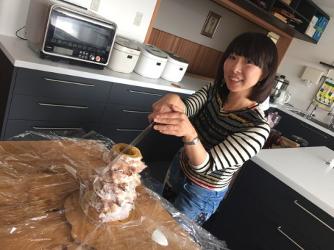バウムクーヘン さきほど、打ち合わせをした方から 「遅くなったけど引越し祝いです」とお菓子をいただきました。 これ‥‥お菓子? 縦長! あけてみると、そうですそれはバウムクーヘンでした。 オーボンヴュータンというお店の 「ガトー・ピレネー」です。 ピレネーのように、そびえている! さっそく切ってみんなで食べよう、ということになりました。 お皿をまったりと運んでいる そして、バウムクーヘンは、レモンのようなさわやかな香りがあり、尖っている部分がカリッとしててひじょうにおいしかったです。 そういえば、むかし バウム部という部活動をしていたなぁ‥‥。 2016/02/19 16:13 |