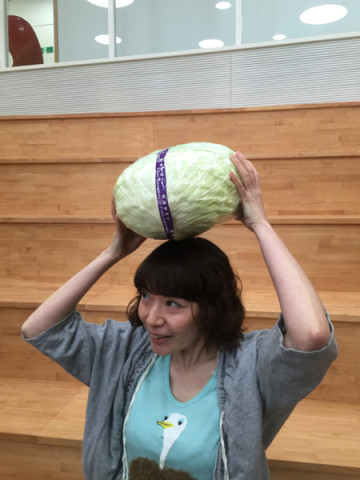 ジュンジュンからのすばらしい野菜。 「『滝を見にいく』を見にいく」 というコンテンツをご記憶でしょうか。 沖田修一監督の映画、『滝を見にいく』がおもしろかったのでたっぷりご紹介させていただく内容でした。 この映画の主人公、 「ジュンジュン」を演じた根岸遥子さんから本日すばらしい野菜が届きました! (根岸さんは妙高にお住いです) 菊芋、アスパラ菜、蒟蒻などなどいろいろいただいたのですが、最もびっくりしたのがこのキャベツ! こんなにおおきいの見たことない! 4.5キロと書いてあります。 はあーーー。 乗組員で最もちっちゃい ちっちゃいひとが持つとより大きく見える気がして。 そしたらやっぱり思った通り。 「もっと大きく見える!」と騒いでいたら人が集まってきまして、私にも持たせろ、と。 それぞれが赤ん坊を抱くようにキャベツを抱えたのでした。 たまたまいらした友森さんまで。 さあ、これらをどうやって美味しくいただきましょう。 たのしみです。 いちばん下の写真、真ん中の女性がジュンジュンです。 福田利之さんとふたりで ジュンジュンに会いに行ったレポートをこの機会に読み返してみました。 福田さんの熱演に、感動。 根岸さん、その節はお世話になりました。 そしてこのたびも、誠にありがとうございましたー! 2016/02/19 19:32 |
