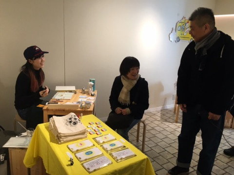 「とくながあきこのなんでも描く屋」 今回、初出店(?)の 「とくながあきこ の なんでも描く屋」。 コースターになんでも描いてくれるお店です。 サンプルに描かれているのは猫や星や空想の生き物や 「KATACHI」や……、え? か、形? まぁ、とにかく、なんでも描いてくれるそうです。 お一人めのお客さまは、 「自分」をオーダー。 ほぅほぅ、似顔絵ですね! そこへ、朝の散歩がてら糸井が遊びに来ました。 「どう?あかるい?」 はい、今日もはちゃめちゃにあかるいです! 糸井は写真館やショップをひととおり見て、とくながあきこさんのグッズ、iPhoneケースをお持ち帰り。 ひであきさん(とくながさんの愛称)、飛び上がるほど喜んでました。 お一人めのお客さまのオーダー、似顔絵はこんな感じに仕上がりました。 しわっちさん、ありがとうございました! 2016/02/27 16:24 |