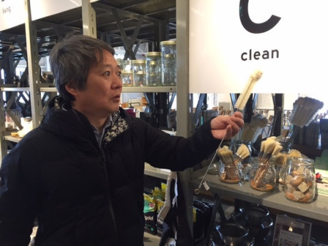 ラカグさんへ2 ラカグさんの2階では階段をのぼった正面の場所で、大きくLDK WAREを展開してくださっています。 お店のかたによると、エプロンがいちばん人気とのこと。 そのほか、カレーの恩返しやジャム、しょうがシロップなども販売しています。 また、スタイリストの岡尾美代子さんがセレクトしたホームをたのしくするアイテムもいろいろ。 ホソイの個人的なお気に入りは、細いところまで洗えるタワシと白と紺のフランス製ふきん。 「このふきんは、いいよねー。 しかも、このカバンと同じ柄なんだよ?」 ‥‥‥‥‥‥‥‥? 「ほら、二重線」 あ。 カバンのくだりはよく分かりませんが、どのアイテムもきりっとした清潔感があって、ついつい欲しくなります。 見ていてとてもおもしろいです。 (ぼくもついつい、自分用に いくつか買ってしまいました) 2016/03/01 14:44 |