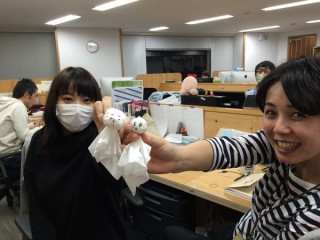 雨天決行なので、天気を心配していたらなにやらティッシュを丸めてる…そっか!てるてる坊主か〜。