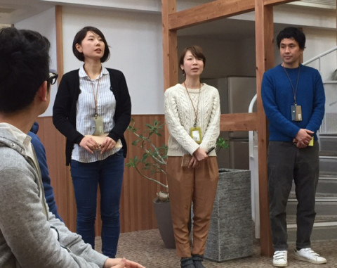 3月の3人をよろしく! さっきのフジタさんの投稿で、隠し撮り的に紹介させてもらいましたが、実は、別アングルからも撮影してました。 しかも、こちらは、正々堂々撮り! 朝のミーティングで、ニューカマーの人たちに、ひとりひとり自己紹介をしてもらうのは、弊社恒例。 それぞれのエピソードを交えたしっかりした挨拶をする新入社員とそれを、拍手でお迎えしながら聞くまわりの乗組員の風景は、背景の木目調とあいまってちょっと春の学校みたいな感じです。 でも、新入生って、いうより、なんだか、3人ともスラッとしていて、新人の先生が転任してきたような…、なんて、自分は、昭和の「金八先生」世代、ということを、実感させられながら、写真を撮っておりました。 昨日から気仙沼に行ってるスガノ画伯が帰ってきたら、またすぐ、顔アイコンもできてくると思いますが、3月に入った3人、これからも、よろしくお願いします! 4枚目の写真左から、初の宇宙部の紅一点、斉藤さん、気仙沼のバスツアーに参加したこともある、むっちゃん、珍しい苗字なのに、会社の前にあるお店の名前といきなりかぶった、古謝(こじゃ)くんです。 あたらしい人が入ってくるのは、うれしいね! 2016/03/11 13:59 |