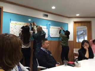 今日の大所帯会議。 今朝は、様々なプロジェクトの進み具合を確認する会議でした。 ニューフェイスもたくさん増えて大所帯になったので、 「カレンダーが見づらいね」 という話に。 あまりに雑な貼りかたでそうとう汚い‥‥のは目をつぶるとして、時間をかけていちおう貼り終えました。 と、会議をすすめていると ベリ、ベリベリベリ‥‥メリメリ‥‥バッターン! 大きな音とともに、重みで1つのカレンダーが落ちました。 落ちたカレンダーをさらにマスキングテープで補強して、仕切り直し。 会議を再開して話しはじめると、またすぐに ベリベリベリ、ベリベリ‥‥バターン! ガッシャーン! ふたたび大きな音を立ててカレンダーが壁から落ちました。 ワタワタと立ち上がってマスキングテープを貼り直す もう気にせず話を続ける どうすればいいのか、困るニューフェイスのみなさん‥‥。 真面目な会議のはずが、コントのようで、ちょっとおもしろかったです。 2016/03/14 15:23 |