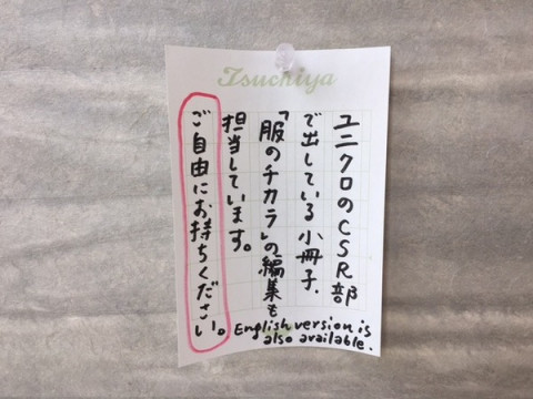 ユニクロに置いてある「服のチカラ」の打ち合わせだそうです。
