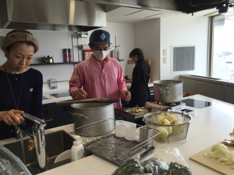 カレーづくりがはじまりました。 東京カリ〜番長の水野さんがさきほどキッチンにかけこんでこられました。 さっそく、弊社カレーガールズのきうちん、むっちゃん、リカさんと一緒にカレーをつくりはじめました。 今回、水野さんは、お昼に仕込み、間は別のお仕事をし、夜に仕上げ、そして、カレートークをしたあとすぐにまた別件に、と、大統領なみの多忙スケジュールで 「魅惑のインドデイ」をもりあげてくださっております。 ちなみに、水野さんの玉ねぎの切り方、にんにくの潰し方などはまとめて、こちらからどうぞ! 玉ねぎの刻み方 南インド方式 にんにくのむき方 13時ごろから、動画でのカレー作成も中継予定ですー。 2016/04/01 12:07 |