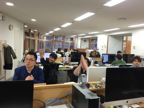 べっかむ3専用棚 このころから 「ほぼ日手帳2017」の本体製作に追われ、猛烈に忙しそうだった 「ひとつの山を越えたよ!」とにこにこしながら話してくれました。 見に行くと、 「オリジナルとかカズンとかWEEKSとか たくさんの本体製作を同時に進めてるから こうやって並べておかないとね。 前の席にいたときは 机に積みあげるしかなかったけど、 席替えでこの席に来れたおかげで、 この棚を使えて、 ほんとにほんとに助かったよ‥‥」 と、しみじみ語ります。 ああ、大変だったのですね‥‥。 席替えで広い棚の近くになったことがそこまで功を奏していたとは!! そんなべっかむ3を、乗組員たちも拍手でねぎらいます。 最後の写真は、 「このあとも入稿が続くから、 まだまだ折り返し地点なんです」 これからも越えなければいけない山はいくつも待ち構えている様子。 (大丈夫かな。棚、足りるかな‥‥) がんばれ、べっかむ3! 2016/04/20 18:58 |