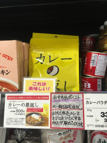 販売店、増えてます! 来週4月26日(火)から ポップコーンの第2回販売がはじまる 「カレーの恩返し」ですが、もともとのスパイスのほうも、あいかわらず人気。 販売店、少しずつ増えています! 少しご紹介すると‥‥ ◎愛知県の 「精文館書店 豊橋本店」。 ◎福岡県、博多マルイ内の 「HMV BOOKS HAKATA」。 ◎東京、アトレ恵比寿内の 「ザ・ガーデン自由が丘」 「ルマガザン恵比寿店」。 ◎また、コストコでは 「コストコ川崎店」のほかに 「コストコ尼崎店」でも取り扱いがはじまっています。 まぶしい黄色いパッケージが目印ですが、場所がわからないときは、それぞれのお店でおたずねください。 よければぜひ、お立ち寄りくださいねー! (写真は順に、 「ルマガザン」恵比寿店、 「ザ・ガーデン自由が丘」恵比寿店、 「精文館書店 豊橋本店」です) 2016/04/22 11:57 |