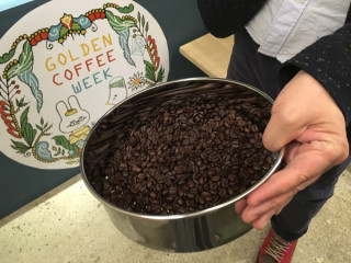 明日も11時オープンです。 明日から5月1日(日)まで開催するTOBICHIの「等々靴磨店」、TOBICHI2の 「ゴールデン コーヒー ウィーク」、どちらの搬入も終わりました! ※搬入のようすは TOBICHIのページをご覧ください。 等々靴磨店のほうは、あとは山邊くんが座るだけ。 道具だけでこんなにも雰囲気ができあがってしまうのですね。 ゴールデン コーヒー ウィークの2階には、カウンターが登場。 ここに、福田さんと山下が立ってコーヒーをふるまいます。 1階も充実したショップになりましたー。 そして、急きょ、1000円以上お買い上げいただいた方にはしゃぼん玉をプレゼントすることが決定! 動物の形をしたかわいらしいしゃぼん玉です。 そうそう、搬入も落ち着いたころに、 が焙煎に再チャレンジしました。 結果は、、、成功! やったー! どちらの催しも11時オープン、19時クローズです。 どうぞ、お気に入りの革靴を履いてコーヒーを飲みに来てくださいね。 2016/04/29 00:17 |
