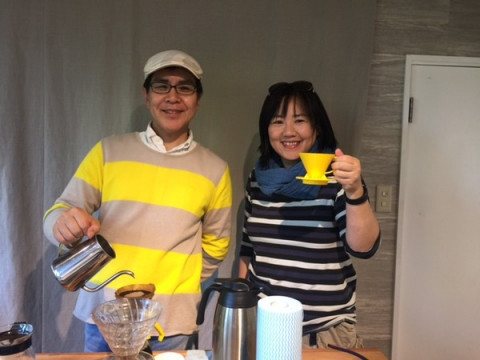 山下さんの入れるやさしいコーヒーをさらに湯を入れて薄めてもらいます。