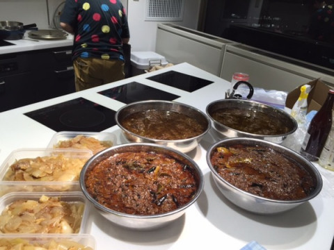 明日を待つだけ‥‥ 明日はいよいよ 「カレーの学校」オープンキャンパス! 今日は、TOBICHI2チームとキッチン仕込みチームに分かれて準備をしていましたが、どちらもようやく、おおかたの準備が終わりました。 会場のTOBICHI2には、水野さんの本がずらりと。 ぱらぱらめくっただけでも、本の内容の濃さがすごい。 糸井との対談に出てきた 「カレーの教科書」もありました。 キッチンのほうは、大きなボウルになにやら大量の 「これからカレーになるもの」が。 明日の朝、水野さんが仕上げをしてそれぞれ完成となるそうです。 社内を歩いていたら (写真3枚目)、‥‥お、これは明日使うポスターっぽい。 全面黄色のなかに、スターマークが見えます。 ではでは、明日のカレーの学校は、11時よりオープン! 水野さんのおいしいカレーを食べに、ぜひぜひ遊びにきてくださいねー。 2016/05/06 23:05 |