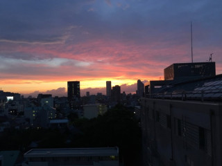 みつばち 本日、席のまわりにみつばちがぶんぶんと飛んでいました。 私の座席のある部屋は 「カロリーメイツ」という食いしん坊トリオがそろっている場所なので、机の上に飴やおかしがいろいろ置いてあります。 みつばちのほうも、 「なんなの? なんなの?」と去りがたいのだと思います。 いつか窓から逃げてくれるといいな、と窓を開けていたら、いつのまにかみつばちはいなくなっていました。 ああ、いなくなったね、と窓を閉めようとして外を見たらきれいな夕焼けでした。 2016/05/11 18:58 |
