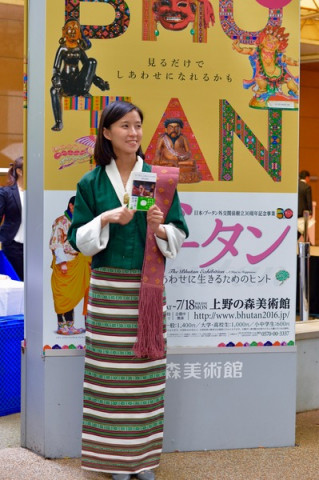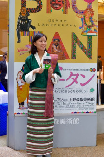 ブータン展 明日5月21日から 上野の森美術館で 「ブータン しあわせに生きるためのヒント」 の展覧会が開催されます。 わたくしは、本日、そのオープニングに行ってまいりました。 セレモニーではブータン第4代国王妃陛下をはじめ、女優の鶴田真由さんなどたくさんの方がごあいさつをなさっていました。 そして、その会場にはいつもほぼ日でお向かいの席に座っている たまちゃんは、いま 気仙沼ニッティングの社長として活躍していますが、今日はブータンの民族衣装 「キラ」を着ています。 気仙沼に行く前、たまちゃんはブータンの首相フェローを1年間、していたのです。 2016/05/20 19:18 |