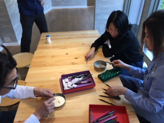おえかきワークショップの準備 TOBICHI2で開催中の 「あつまれ!にて隊こむぎ組+展」では、17時半からミュウゼ先生によるおえかきワークショップがはじまります。 机や照明など、準備万端です。 そこへミュウゼ先生がかけあしでやってきました。 「たいへん! えんぴつ削らなきゃ!」 早めにいらしていたワークショップに参加される方も巻き込んで、12名分のえんぴつを削っています。 ワークショップ中ももちろん原画をご覧いただけますので閉店時間に近くなっても、どうぞお越しください。 ワークショップの見学も大歓迎です。 前回、見させてもらったのですが参加されているみなさん、めきめきと上達していってとてもおもしろかったです。 お時間に余裕がある方は、ぜひ! 2016/05/20 17:35 |