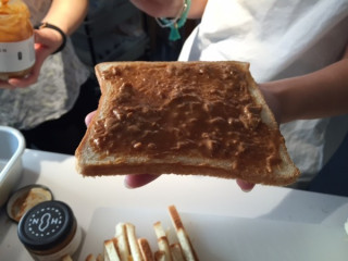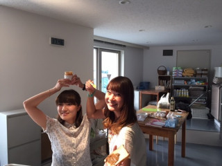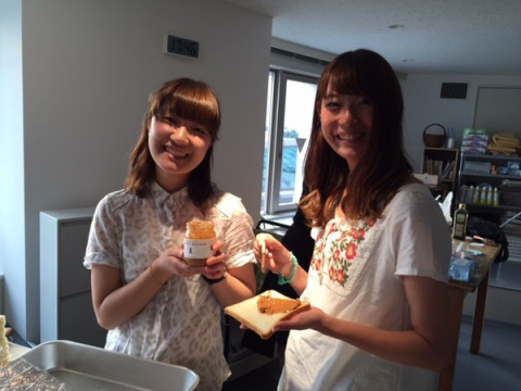輝いてる お、今日はキッチンがにぎやかだ‥‥と思って覗いてみたところ、料理隊長の こちら、本日社内でおこなわれる、あるイベント用の軽食とのこと。 なかには本日発売ながら、一瞬で売り切れた大人気の「HAPPY NUTS DAY」のピーナッツバターサンドも。 ちょうど作っていたのがアルバイトちゃんズの萌ちゃん&初音ちゃんだったので、 「ピーナッツバター、好き?」 と聞いてみると、揃った声で、 「「大好きです!!」」 とのこと。 「‥‥声、揃った!」 「けらけらけら!(笑い声)」 「でもほんとに大好き」 「わたしも!」 おおー、いい笑顔。 そしてたのしそう。 ふたりがあまりにいい笑顔だったので、 「じゃあ、今日は発売日だし、 写真撮らせてよ」 とお願いしてみたところ、 「いいですよ〜」とそのまま、ピーナッツバターサンドを片手にいくつかポージング。 ふつうの写真で別によかった‥‥のですが、さすが若者、写真慣れしていて、その輝きっぷりがまぶしかったです。 若いって、すばらしいですね。 なんだか変な感想ですが、ふたりのまぶしさに、感動しました。 ※「HAPPY NUTS DAY」のピーナッツバターは、6月3日(金)に再入荷が決まりました。 どうぞ、おたのしみに〜。 2016/05/20 18:17 |